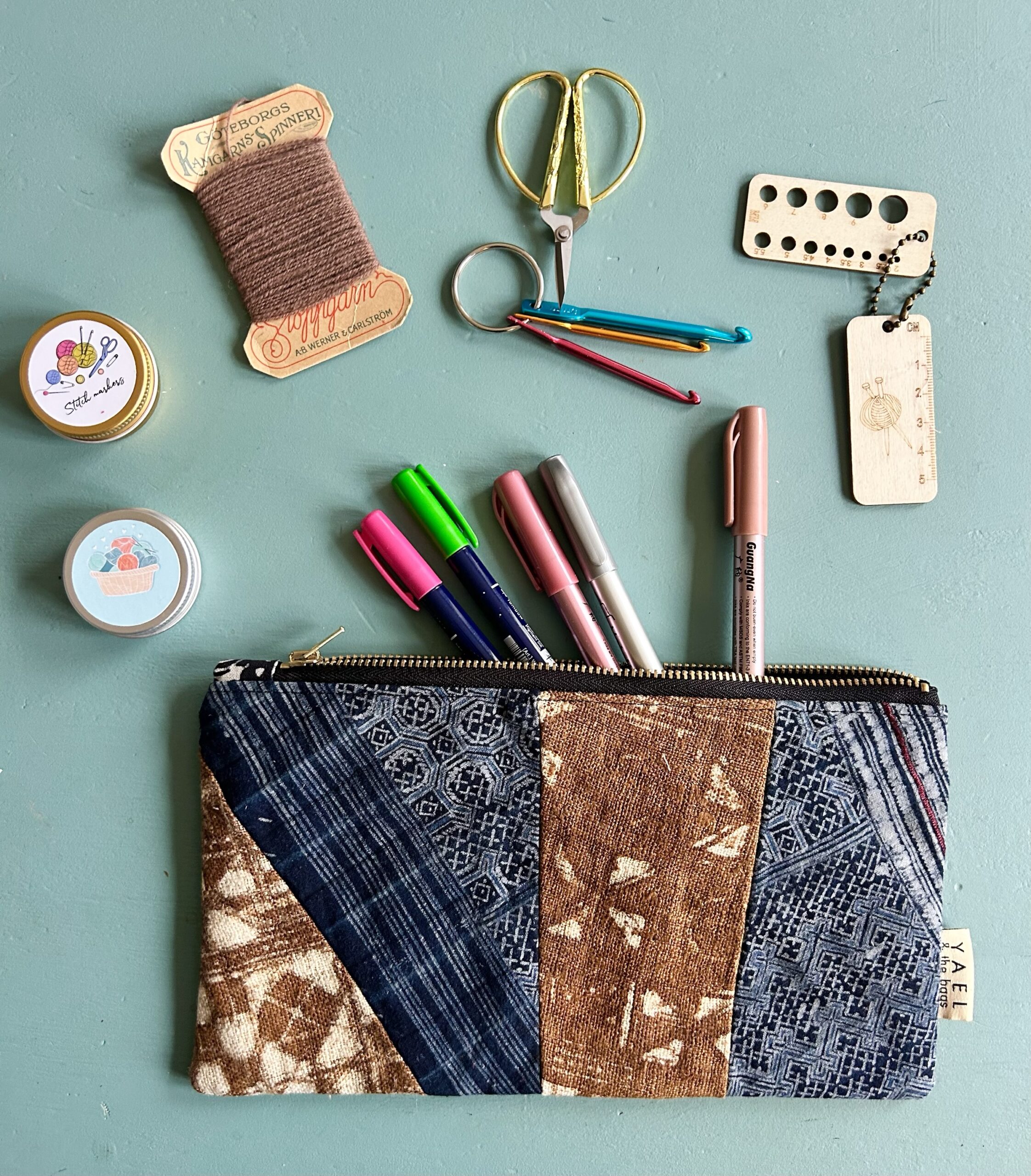 - Större börs/pennfodral som passar för pennor, virknålar, strumpstickor med mera
